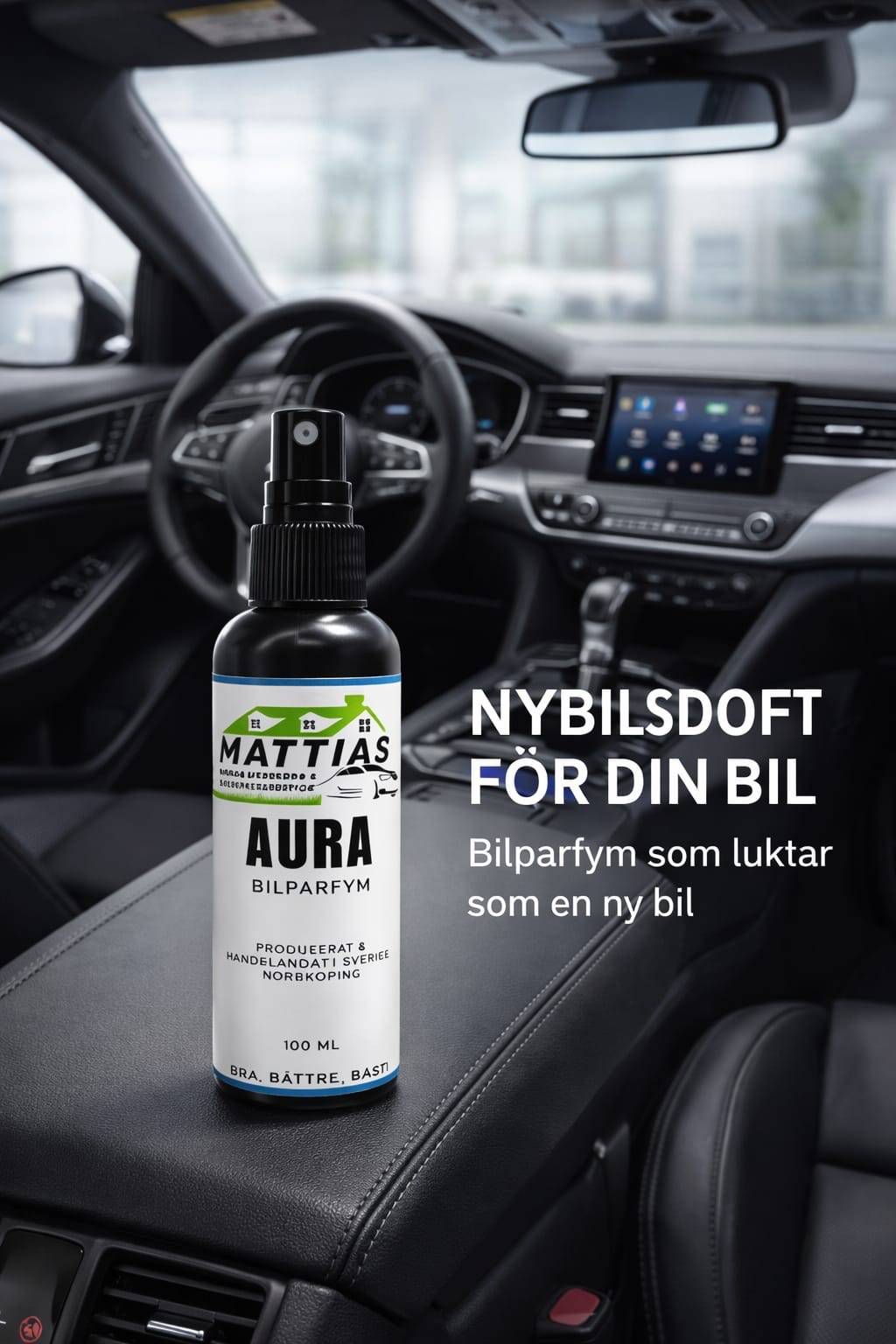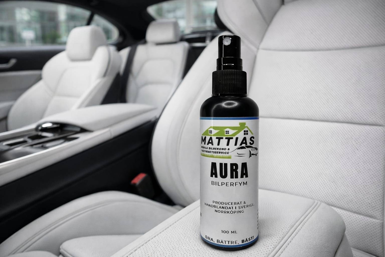 AURA är en bilparfym framtagen för dig som vill ha en ren och exklusiv doftupplevelse. Den sprids jämnt i kupén och ger en fräsch, lyxig nybils känsla som håller.