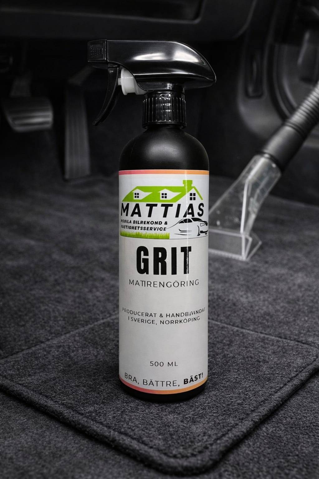 GRIT är utvecklad för att förbättra resultatet vid dammsugning av bilens mattor och golv. Formulan mjukar upp fibrerna och reducerar statisk elektricitet, vilket gör att sand, hår och smuts släpper lättare.